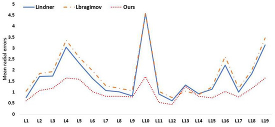 Mean radial errors (unit: 1 mm) in detection of individual landmarks on the ISBI2015 Test (1).