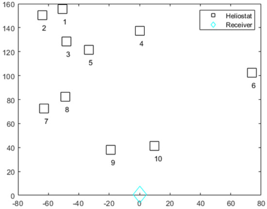 - Leary, P.L.; Hankins, J.D. User’s guide for MIRVAL: A Computer Code for Comparing Designs of Heliostat-Receiver Optics for Central Receiver Solar Power Plants; Technical Report SAND-77-8280; U.S. Department of Energy Office of Scientific and Technical Information: Livermore, CA, USA, 1979.