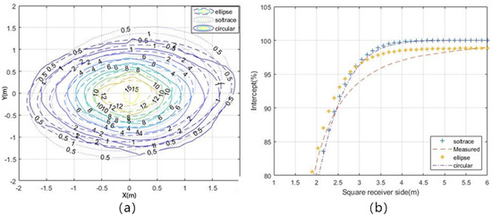 - Huang, W.; Liang, Y. Development of a new flux density function for a focusing heliostat. Energy 2018, 151, 358–375. [Google Scholar] [CrossRef]