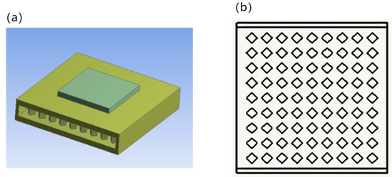 The honeycomb structure is a bionic design of a natural beehive, which consists of a series of hollow cell arrays and has the advantages of structural stability and large contact area of internal channels. As shown in Figure 3, the honeycomb microchannel heat sink was designed with staggered arrangement of microchannels in a hexagonal imitation honeycomb structure, and the multi-layer channels were stacked to significantly increase the heat transfer area. The side length and wall thickness of the hexagonal microchannels were both 0.3 mm.