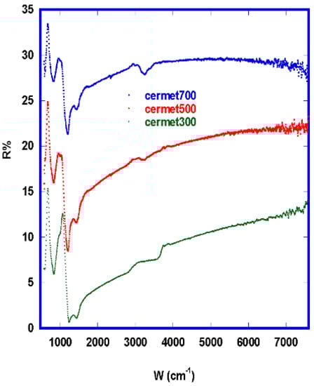 Comparison of FTIR reflectance of cermet samples.
