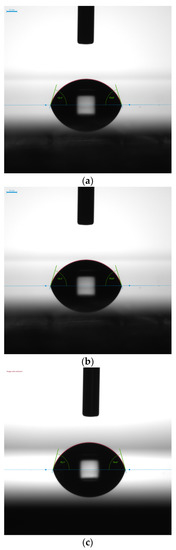 Surface energies, along with dispersive and electrostatic contributes, are reported in Table 4. Moreover, a further comparison was useful for analyzing wetting behavior: the cermet 500 W before (C500-pre) and after (C500-post) annealing (for estimating the effect of thermal treatment). From the overall set of measurements, it can be outlined that: