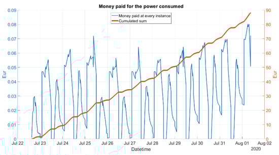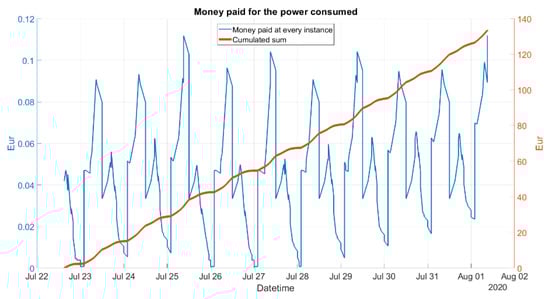 The efficiency of the panels was considered to be constantly 20%. The pricing was considered to be 0.185 EUR per kWh consumed from the grid and 0.018 EUR per kWh sold back to the grid. The tariffs were considered to be fix-priced; however, in future studies, it will be important to consider flexible price tariffs.