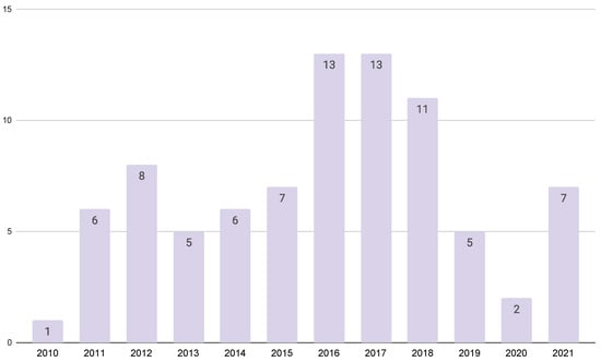 The study will be conducted between 2010 and 2021 since the systematic mapping study by Guedes et al. examines variability management for DSPL from 2006 to 2015 [9]. The authors expose that the area of runtime variability development is not explored in-depth, concluding that most articles do not address the reconfiguration process. Furthermore, in the bibliometric analysis of the articles, an increase in the number of articles is obtained from 2010 onwards.
