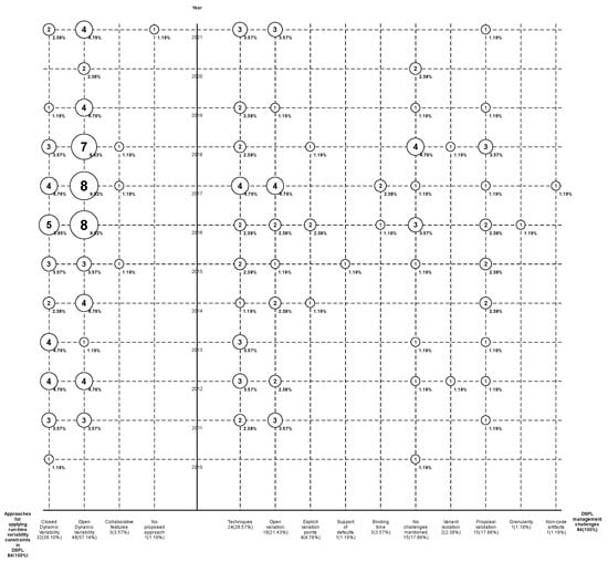 - Ancán, O.; Reyes, M. Cabuplot: Categorical Bubble Plot for Systematic Mapping Studies; Departamento de Ciencias de la Computación e Informática, Universidad de La Frontera: Temuco, Chile, 2020. [Google Scholar]