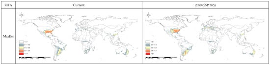 - Phillips, S.J.; Dudík, M. Modeling of species distributions with Maxent: New extensions and a comprehensive evaluation. Ecography 2008, 31, 161–175. [Google Scholar] [CrossRef]
