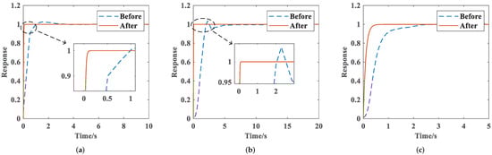 Figure 4. Response curves of different references after G-PSO algorithm optimization: (a) Reference [7], (b) Reference [18], (c) Reference [21].
