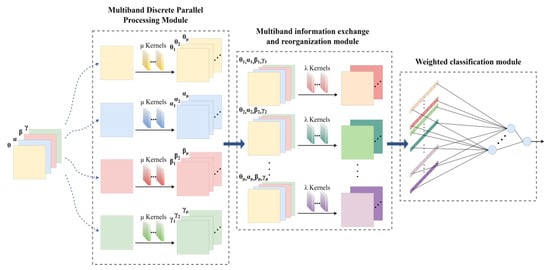 The model mainly includes three modules: a multi-band discrete parallel processing module, a multi-band information exchange and reorganization module, and a weighted classification module.