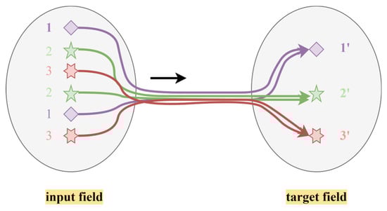 The discrete parallel processing circuit architecture is an organizational mode of presenting information in the nervous system. Signals are presented and processed in parallel through discrete information channels [44], as shown in Figure 5. A typical example is the olfactory bulb in the brain: olfactory receptor neurons expressing the same odorant receptors are scattered in the olfactory bulb but send their axons to the same glomerulus to synapse onto the dendrites of their corresponding second-order projection neurons, forming discrete olfactory processing channels [45,46]. In addition, discrete parallel processing is also characteristic of the visual nervous system. Different bipolar and ganglion cells in the retina form specific connections, and different types of visual signals, such as brightness, color, and motion, are processed in parallel. Compared with serial processing, parallel processing reduces the computational depth, thus reducing the error rate and increasing the processing speed.