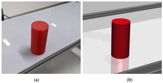 Grasping object used in the actual machine and simulated environment. (a) 3D printed target object. (b) Virtual target object.