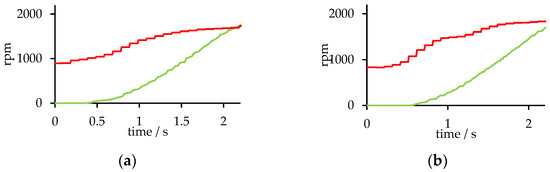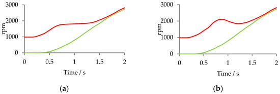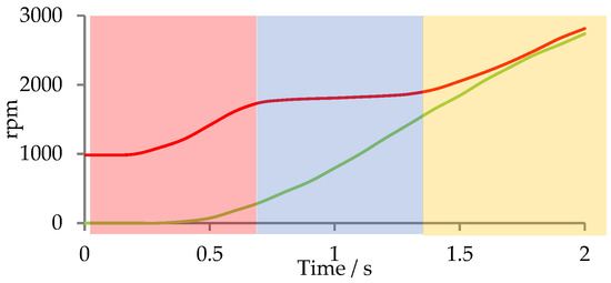 - The engine speed is steady until the input-shaft speed is almost equal to the engine speed (blue).