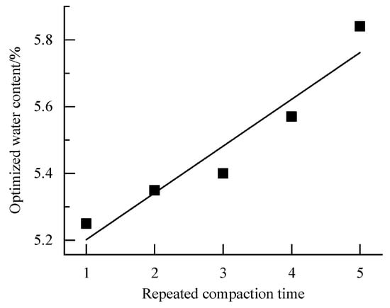 | Repeated Compaction Times | Maximum Dry Density/(g·cm−3) | Optimized Water Content/% |