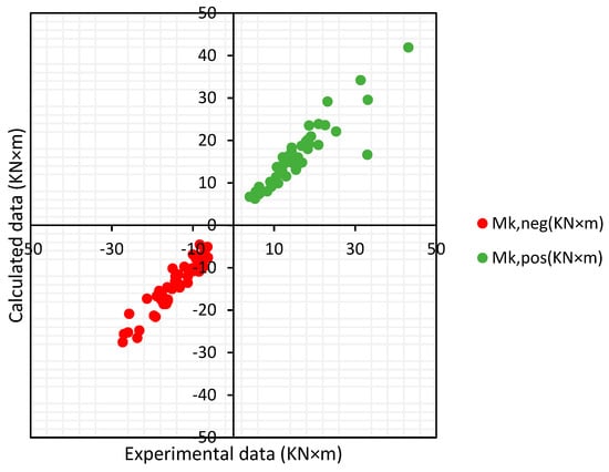The results for the comparison of the experimental data and manual design data under the same cross-sections of railway prestressed concrete sleepers are shown in Figure 6. The results show a good correlation between the design standard (expected capacity from the manual calculation) and the experimental data (true capacity from sleeper testing). It can be seen that the design standard could either underestimate or overestimate the capacity of railway prestressed concrete sleepers. However, the correlation between expected and actual capacities is in a reasonably acceptable range.