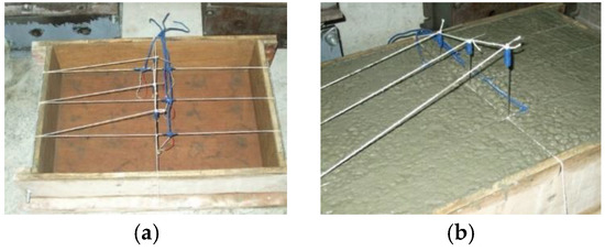 Installation of thermocouples and pressure gauges in the slab specimens: (a) before pouring and (b) after pouring.