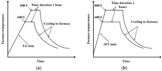 Schematic diagram of the heating rate of the high-temperature furnace: (a) 5 and (b) 10 °C/min.
