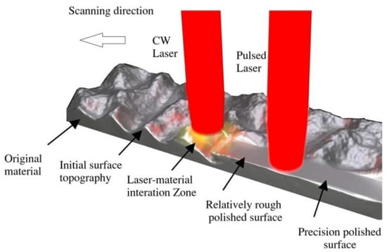 - Yung, K.C.; Zhang, S.S.; Duan, L.; Choy, H.S.; Cai, Z.X. Laser polishing of additive manufactured tool steel components using pulsed or continuous-wave lasers. Int. J. Adv. Manuf. Technol. 2019, 105, 425–440. [Google Scholar] [CrossRef]