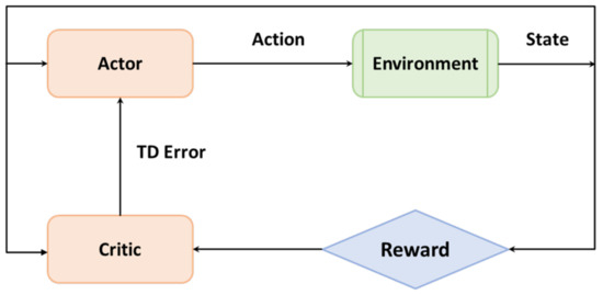 - Mnih, V.; Badia, A.; Mirza, M.; Graves, A.; Lillicrap, T.; Harley, T.; Silver, D.; Kavukcuoglu, K. Asynchronous Methods for Deep Reinforcement Learning. In International Conference on Machine Learning; PMLR: New York, NY, USA, 2016; Volume 48, pp. 1928–1937. [Google Scholar]