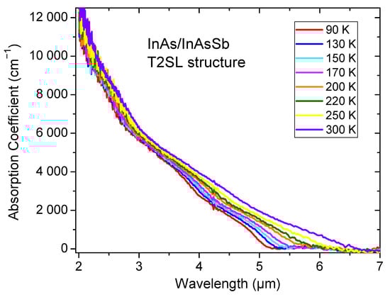 - Rhiger, D.; Smith, E.P. Infrared absorption near the bandgap in the InAs/InAsSb superlattice. In Proceedings of the SPIE Infrared Sensors, Devices, and Applications X, Online, 9 September 2020; Volume 11503, p. 1150305. [Google Scholar]
