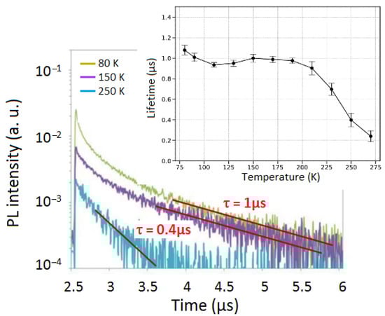 - Olson, B.V.; Shaner, E.A.; Kim, J.K.; Klem, J.F.; Hawkins, S.D.; Murray, L.M.; Prineas, J.P.; Flatté, M.E.; Boggess, T.F. Time-resolved optical measurements of minority carrier recombination in a midwave infrared InAsSb alloy and InAs/InAsSb superlattice. Appl. Phys. Lett. 2012, 101, 092109. [Google Scholar] [CrossRef]