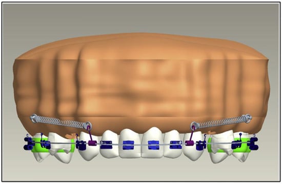 - Sung, S.-J.; Jang, G.-W.; Chun, Y.-S.; Moon, Y.-S. Effective en-masse retraction design with orthodontic mini-implant anchorage: A finite element analysis. Am. J. Orthod. Dentofac. Orthop. 2010, 137, 648–657. [Google Scholar] [CrossRef] [PubMed]