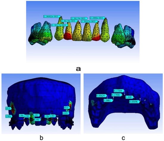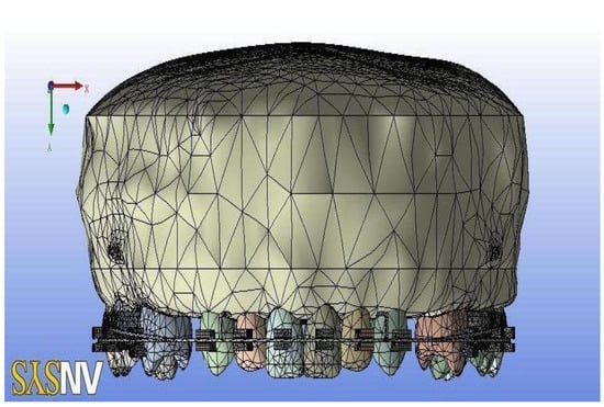 - Jones, M.; Hickman, J.; Middleton, J.; Knox, J.; Volp, C. A validated finite element method study of orthodontic tooth movement in the human subject. J. Orthod. 2014, 1, 29–38. [Google Scholar] [CrossRef]