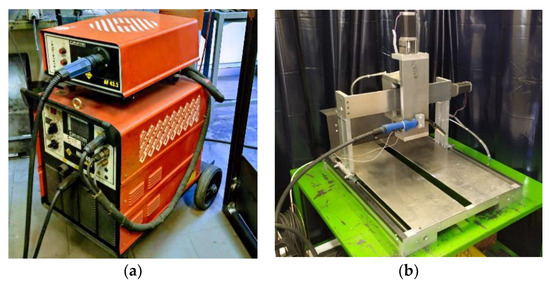 (a) MIG 453 modular welding machine; (b) CNC equipment with welding torch adaptation.