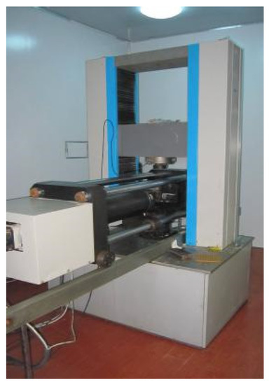 A RYL-600 rock mechanics shear creep testing system was utilized to conduct uniaxial compressive tests (Figure 3). All experiments were conducted under force-controlled conditions with a force rate of 100 N/s, and the specimens were loaded uniaxially to achieve failure. During the process, the stress–strain curve and crack propagation process were recorded, which was useful for analyzing the experimental data.