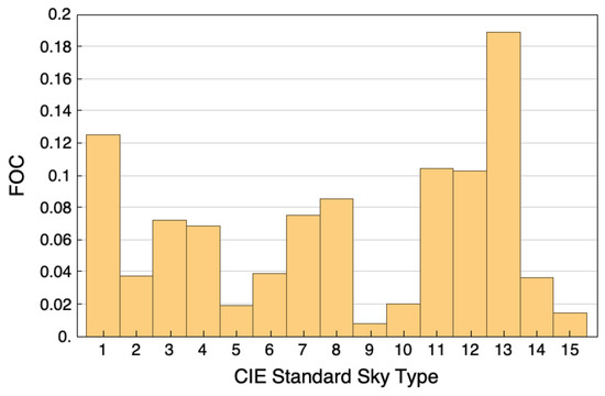 Frequency of Occurrence (FOC) of each CIE standard sky type in Burgos (Spain) from 14 September 2020 to 6 June 2022.