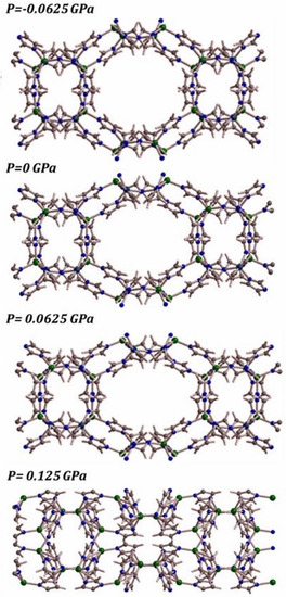 - Cai, W.; Katrusiak, A. Giant negative linear compression positively coupled to massive thermal expansion in a metal–organic framework. Chem. Commun. 2014, 5, 4337–4342. [Google Scholar] [CrossRef]