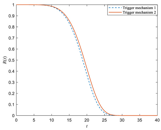Figure 6, we can see that the system reliability under trigger mechanism 2 is higher than the system reliability under trigger mechanism 1.