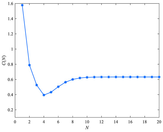 The value of parameters are chosen to be , , and , Then , . Thus, using Equation (9), we can obtain .