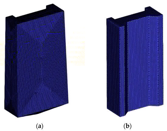 In the experiment, wear occurred only on the wear plate, but all shapes including the main body were reflected in the analysis assuming that the main body could affect the particle behavior. In the case of multiple parts modeling in a DEM, a model is created in a particle domain, and then the model is configured by dividing each part into a non-wearable and wearable domain. Therefore, in the wear model, the main body to which the load is transmitted is composed of rigid parts, and the wear plate part where wear occurs is composed of a wearable domain. Then, the load due to collision was calculated with the HLS normal force model and the LSCL tangential force model described in Figure 2 for the load transfer between particles. As shown in Figure 5, a 3D model of the specimen to be worn was created. Since the DEM is an analytical method that evaluates the behavior of individual particles, it requires excessive computational resources. For the efficiency of analysis, it is common to model particles and structures as rigid bodies. In this study, the outer surface of the specimen was divided into a triangular rigid grid. In the triangular rigid grid, the deformation due to the load cannot be evaluated; only the force transmitted through the particles can be evaluated. Deformation under load and material loss due to wear are clearly different behaviors. Archard’s wear law calculates the wear loss volume using the load and the deformation of the surface grid described in the previous section.