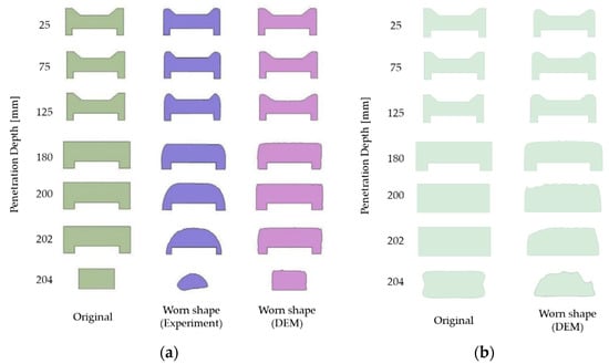 Comparison of wear shape: (a) reference study []; (b) present study.