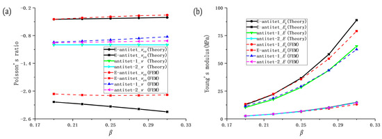 Detailed results of Poisson’s ratio and Young’s modulus of E-antitet at different β.