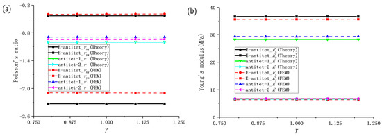 Detailed results of Poisson’s ratio and Young’s modulus of E-antitet at different γ.