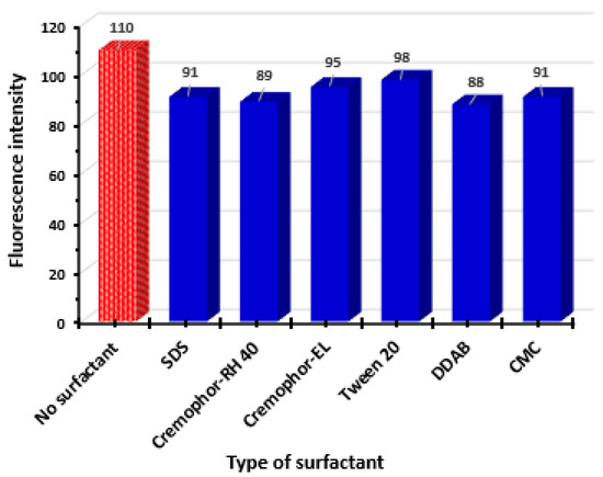 Effect of type of surfactant on the fluorescence intensity of DUV solution (200 ng/mL in methanol). Values are mean of 3 determinations.