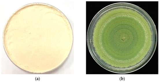 The sample of dielectric properties measurement: (a) Rice powder sample; (b) Aspergillus sp. BP17.