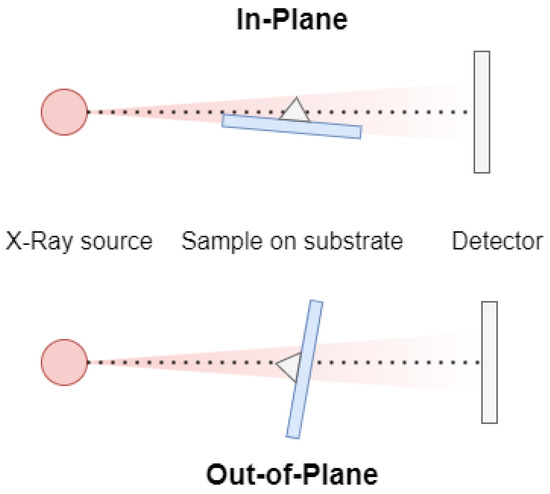 Consequently, precession of the substrate that shadows the deposited structure over a wide range of the angular views may occur, cf. Figure 5. In general, for high-aspect-ratio samples, an out-of-plane alignment is preferred, as the substrate’s long side/thick edge passes the angular views only two times quickly. In an out-of-plane alignment, the pyramid’s top/bottom is imaged frontally and image information is maximised over a wide range of angular views. Note that the length of the X-ray beam path through the long side/thick edge is very large (up to 60 times larger) compared to the short side/thin edge and/or the pyramid’s size.