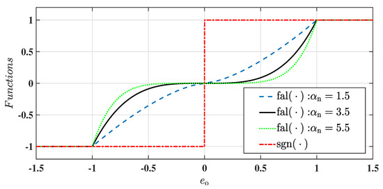 where and , respectively; and are the exponential and switching gains, respectively; ; ; denotes the signum function.