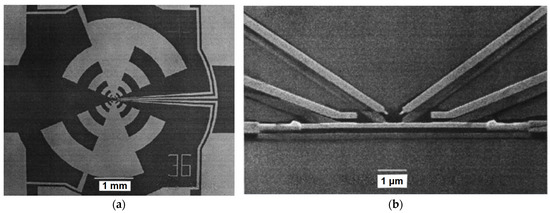 - Dolan, G.J. Offset mask for lift-off photoprocessing. Appl. Phys. Lett. 1977, 31, 337–339. [Google Scholar] [CrossRef]