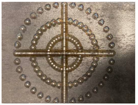 Image of the sample after the transmission measurement showing the ablation marks on the generation side.