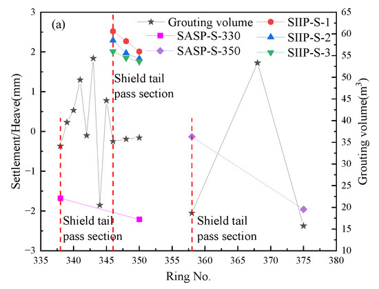 This conclusion is consistent with the key stage of settlement formation summarized [16,17]. The grouting stage after the shield tail passes through the section needs to be considered for surface settlement.