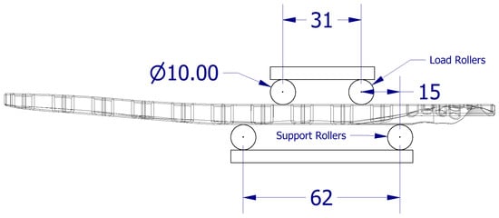 Four-point bending condition of ‘INT-BP’ plate, dimensions in mm.