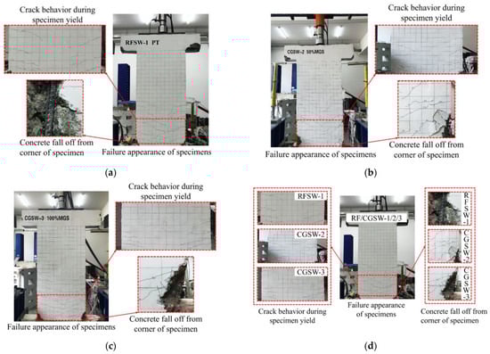 Failure morphology of the specimens (a) RFSW-1 (b) CGSW-2 (c) CGSW-3 (d) Comparison.