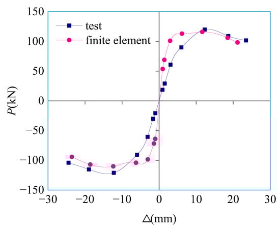 The finite element and test skeleton curves of the specimen are shown in Figure 18, and the comparison between bearing capacity and displacement is shown in Table 10.