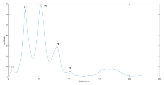 To generate test data and develop an algorithm, five characteristic points were identified for each obtained signal spectrum. These five points are the very first five peak points of the spectrum. A pre-analysis of the data showed a spread of the number of peaks for each signal, from 7 to 15. For the initial stage, the first five peaks were selected. The number five gives further insight into the effect of the number of peaks selected as an input on the convergence of the algorithm and the quality of the solution obtained.