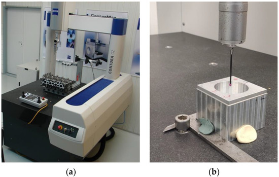 The CMM device Carl Zeiss Contura G2 (a) CMM device; (b) Clamping and measurement processing.