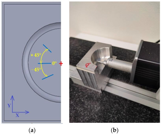 Three directions were used for the measurement, as shown in Figure 11a. The measurement process is presented in Figure 11b. In each direction, 0°, +45°, and −45° measurements were conducted and then the average value was calculated.