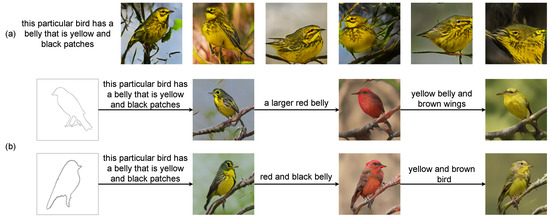 - Nam, S.; Kim, Y.; Kim, S.J. Text-Adaptive Generative Adversarial Networks: Manipulating Images with Natural Language. In Proceedings of the Advances in Neural Information Processing Systems 31, Montréal, QC, Canada, 3–8 December 2018; pp. 42–51. [Google Scholar]