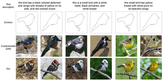 - Compared with recent T2I methods, our proposed method can basically ensure the synthesized image’s authenticity because the contour information determines the basic shape. On the other hand, since the new text is allowed to modify the content of the previously synthesized image continuously (see Figure 1b), the whole work is more practical.